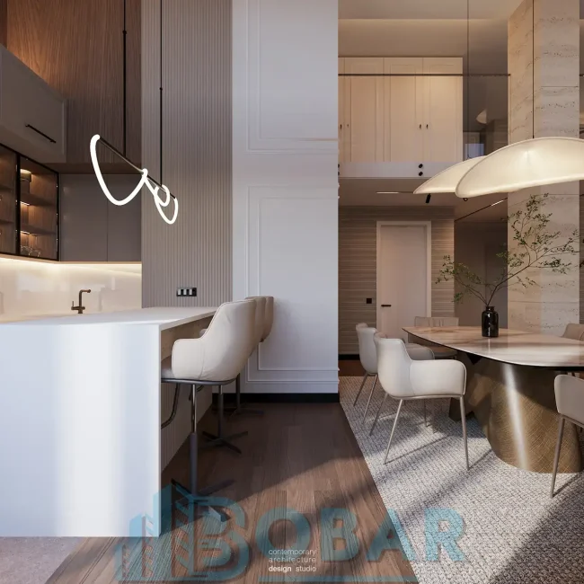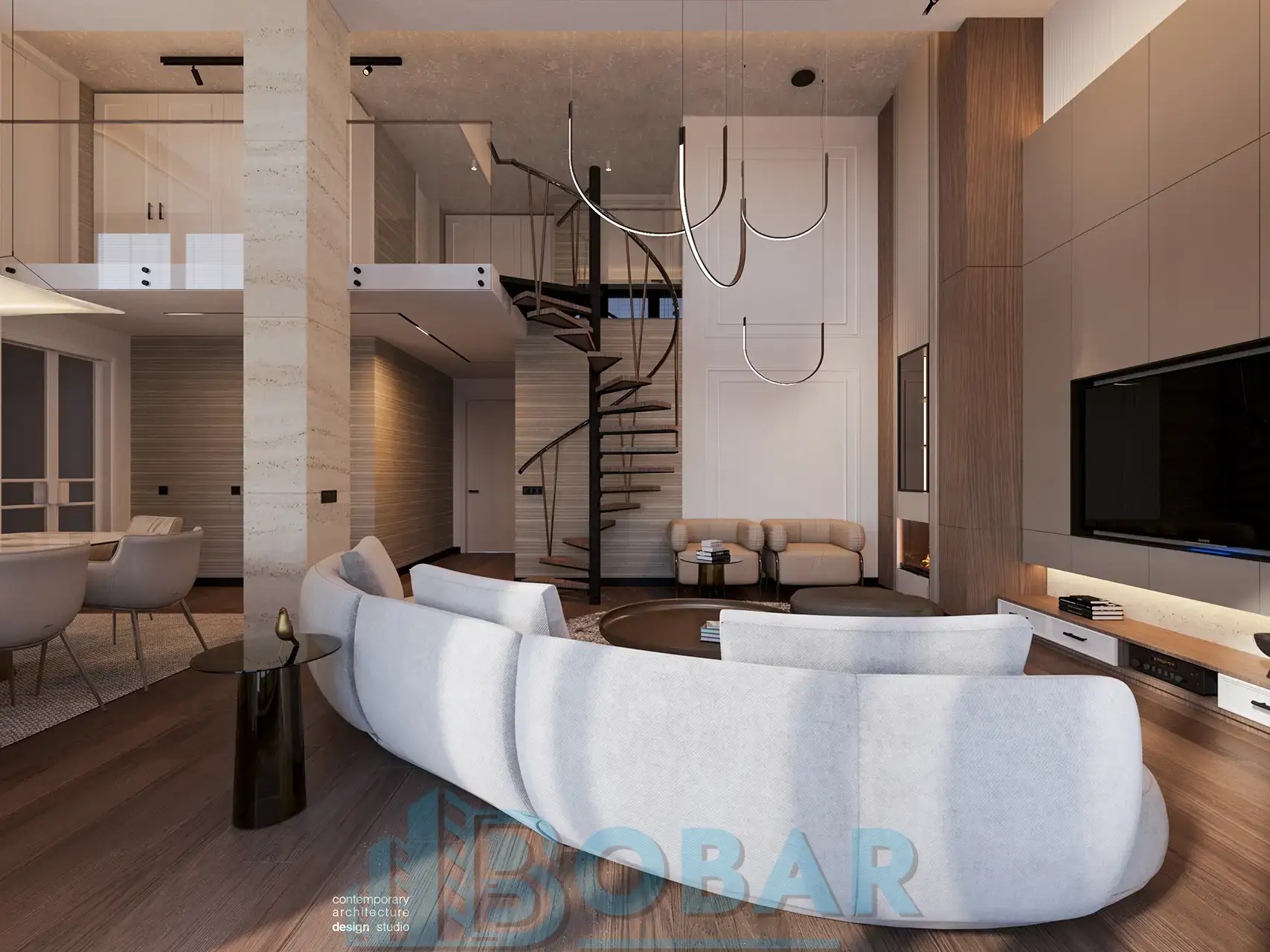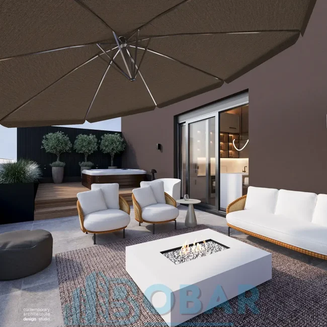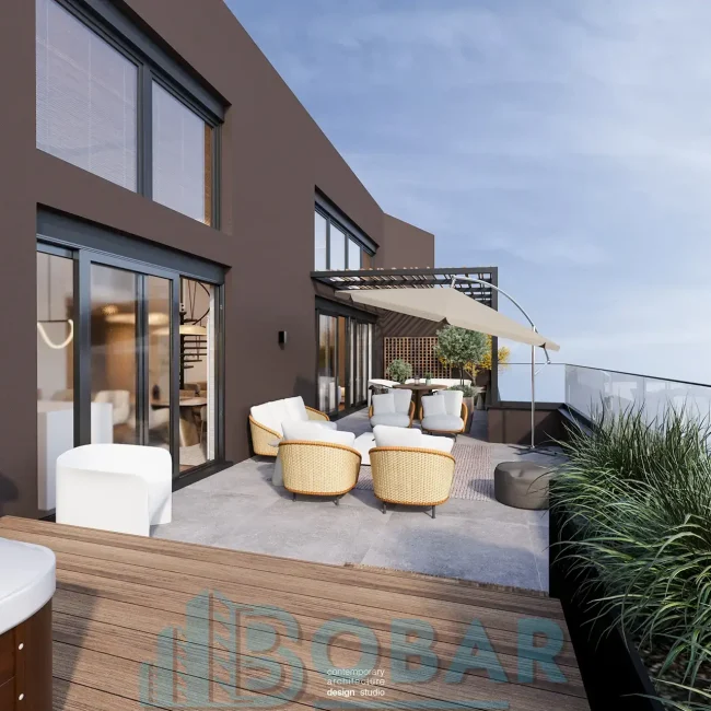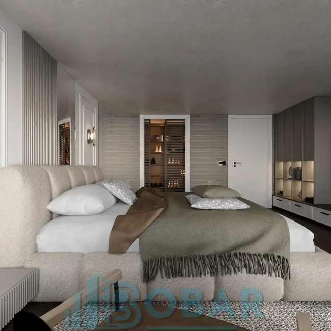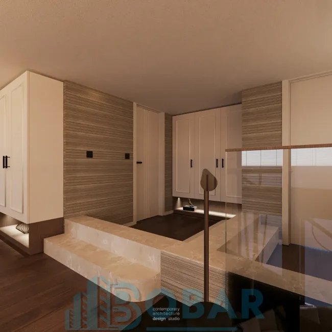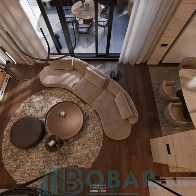 Ovaj stan se nalazi na sedmom spratu stambeno-poslovnog kompleksa Sajam Korner i odlikuje ga visina plafona od 6 metara, pažljivo projektovana galerija u kojoj su smeštene dodatne spavaće sobe i kupatila, kao i prostrana zelena terasa. Funkcionalno organizovan prostor povezuje otvoreni dnevni deo sa zasebnim nivoima koji pružaju potpunu privatnost i maksimalnu udobnost. Pri izboru materijala i nameštaja korišćeni su samo najkvalitetniji premium materijali, sa posebnom pažnjom na detalje i vrhunsku izradu, kako bi stan pružao dugotrajnu udobnost i luksuzan ambijent.