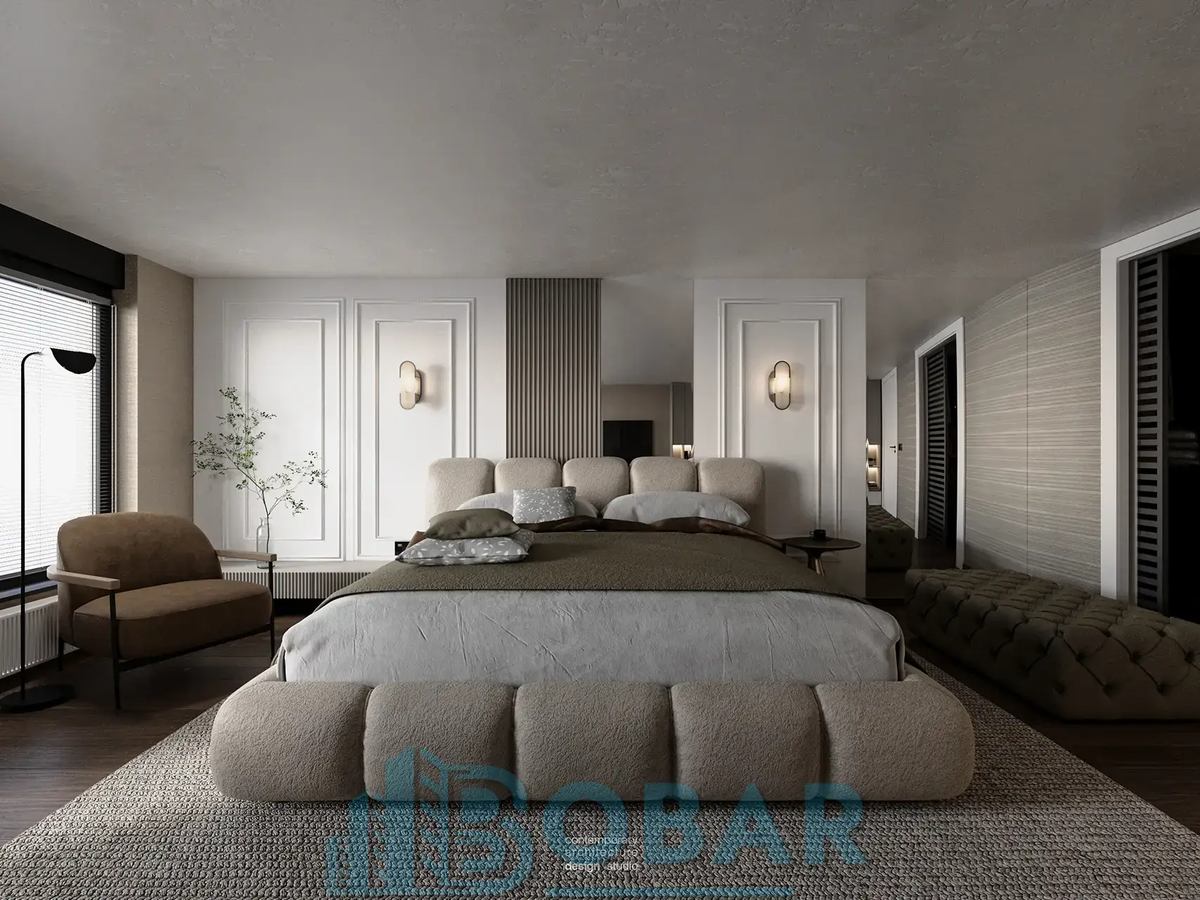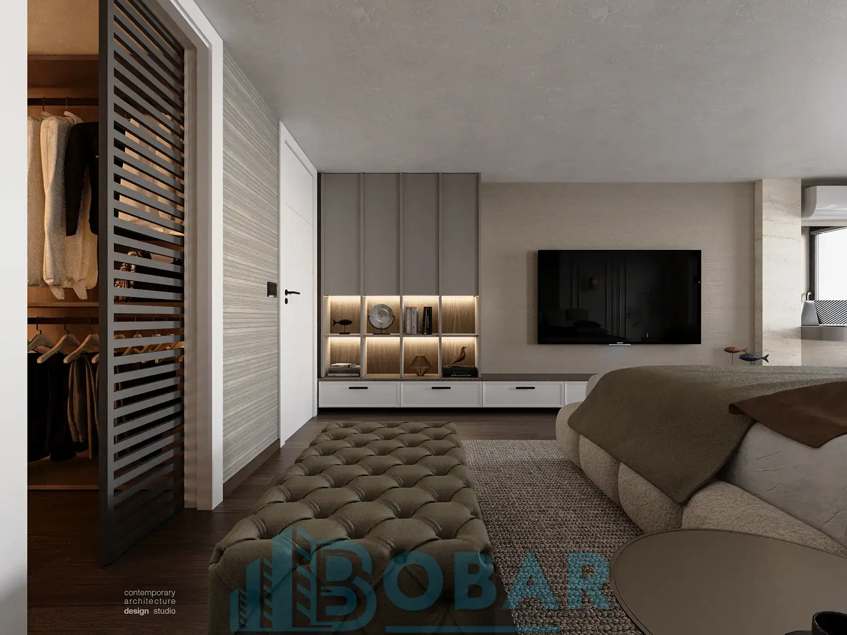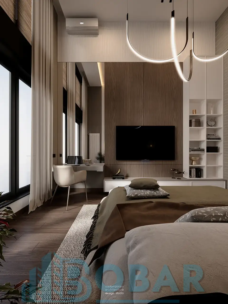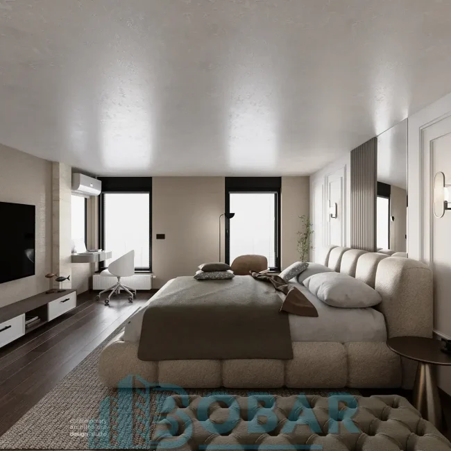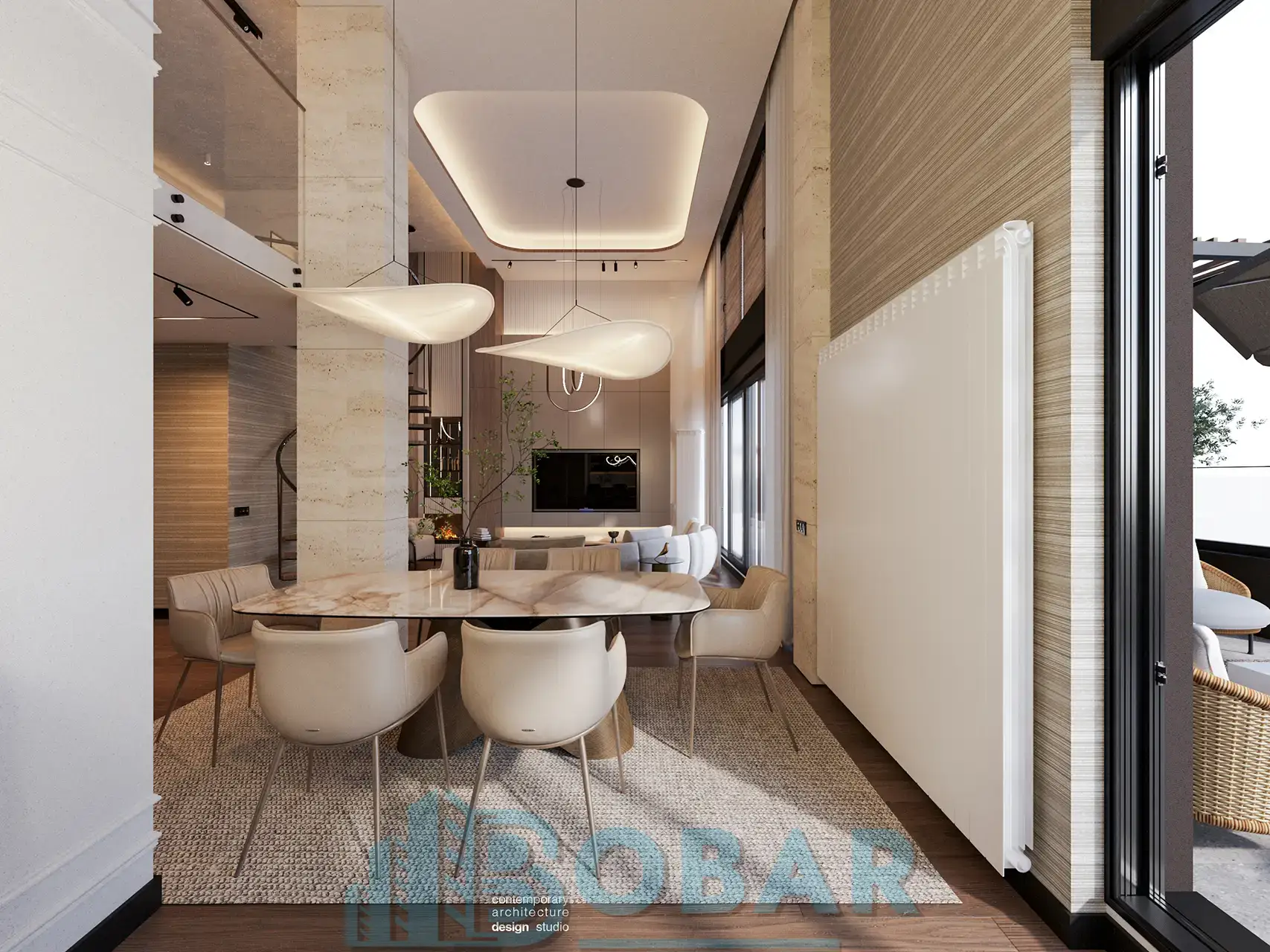 Ovaj stan se nalazi na sedmom spratu stambeno-poslovnog kompleksa Sajam Korner i odlikuje ga visina plafona od 6 metara, pažljivo projektovana galerija u kojoj su smeštene dodatne spavaće sobe i kupatila, kao i prostrana zelena terasa. Funkcionalno organizovan prostor povezuje otvoreni dnevni deo sa zasebnim nivoima koji pružaju potpunu privatnost i maksimalnu udobnost. Pri izboru materijala i nameštaja korišćeni su samo najkvalitetniji premium materijali, sa posebnom pažnjom na detalje i vrhunsku izradu, kako bi stan pružao dugotrajnu udobnost i luksuzan ambijent.
