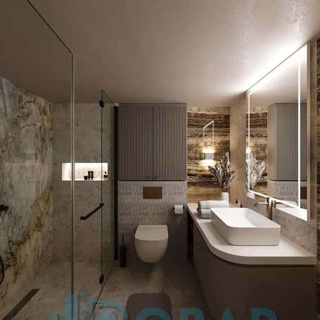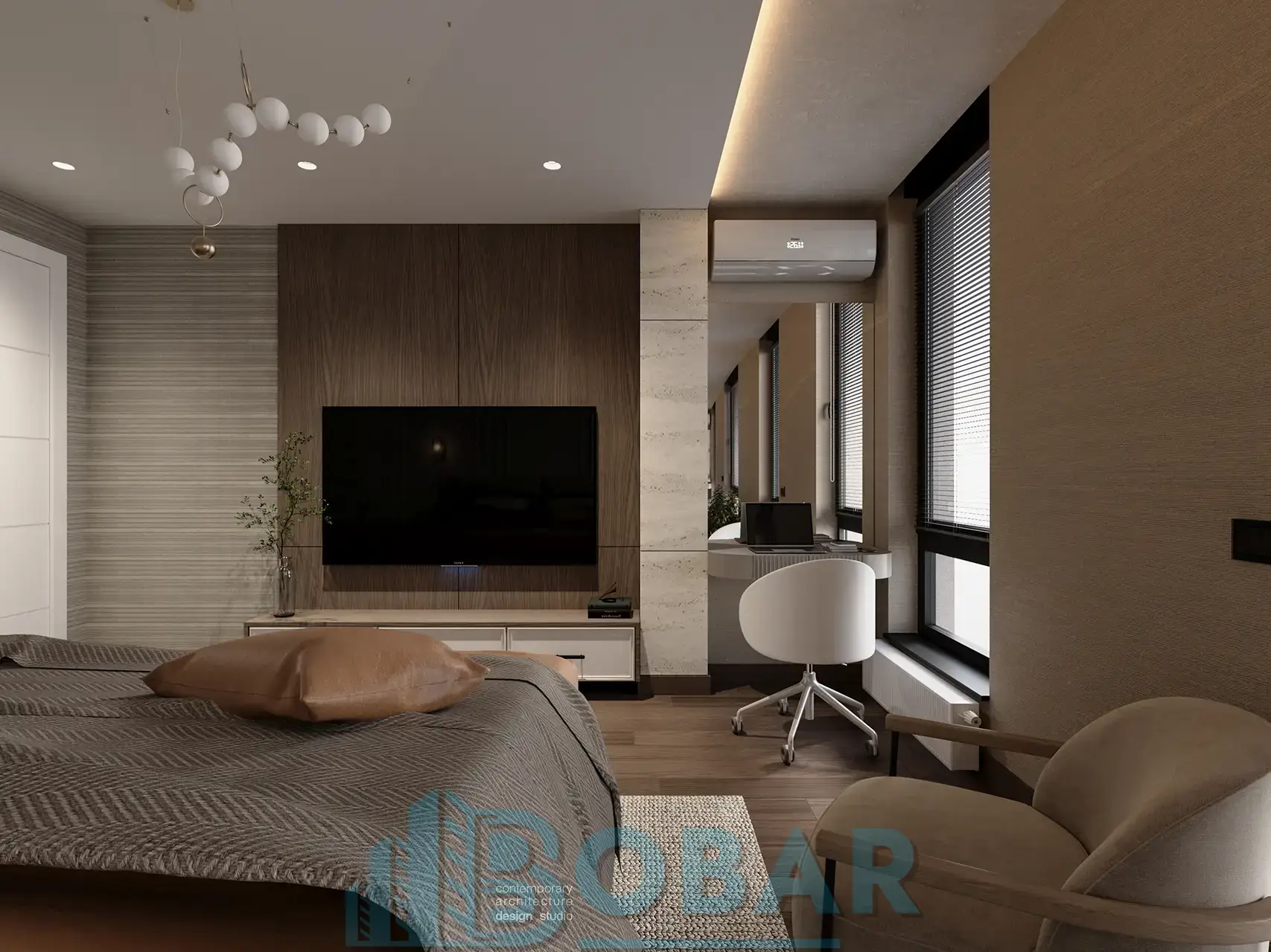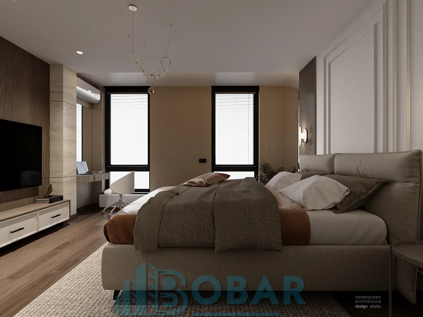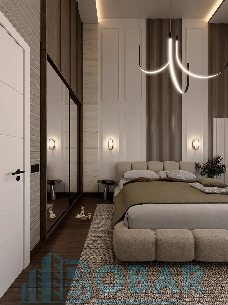 Ovaj stan se nalazi na sedmom spratu stambeno-poslovnog kompleksa Sajam Korner i odlikuje ga visina plafona od 6 metara, pažljivo projektovana galerija u kojoj su smeštene dodatne spavaće sobe i kupatila, kao i prostrana zelena terasa. Funkcionalno organizovan prostor povezuje otvoreni dnevni deo sa zasebnim nivoima koji pružaju potpunu privatnost i maksimalnu udobnost. Pri izboru materijala i nameštaja korišćeni su samo najkvalitetniji premium materijali, sa posebnom pažnjom na detalje i vrhunsku izradu, kako bi stan pružao dugotrajnu udobnost i luksuzan ambijent.