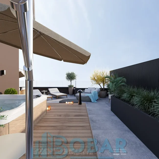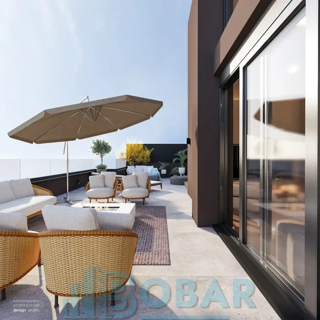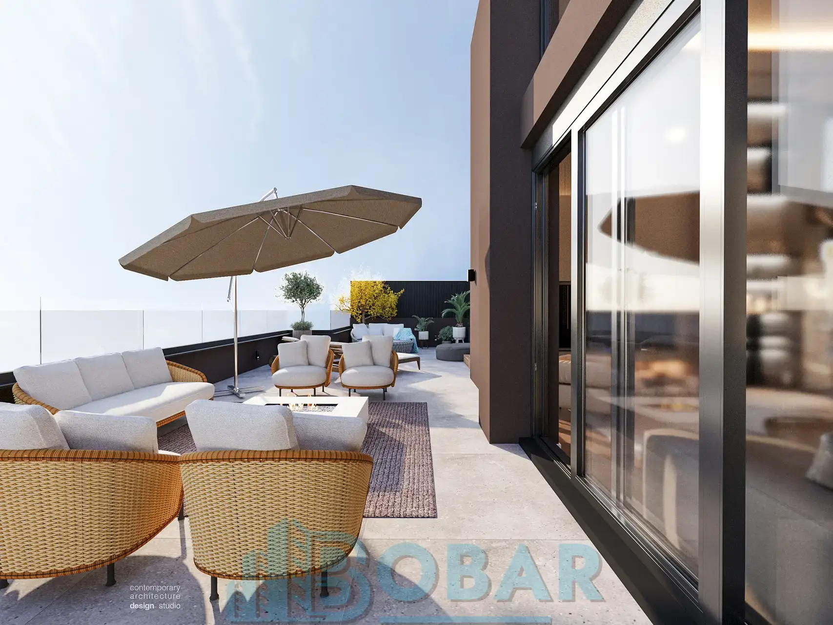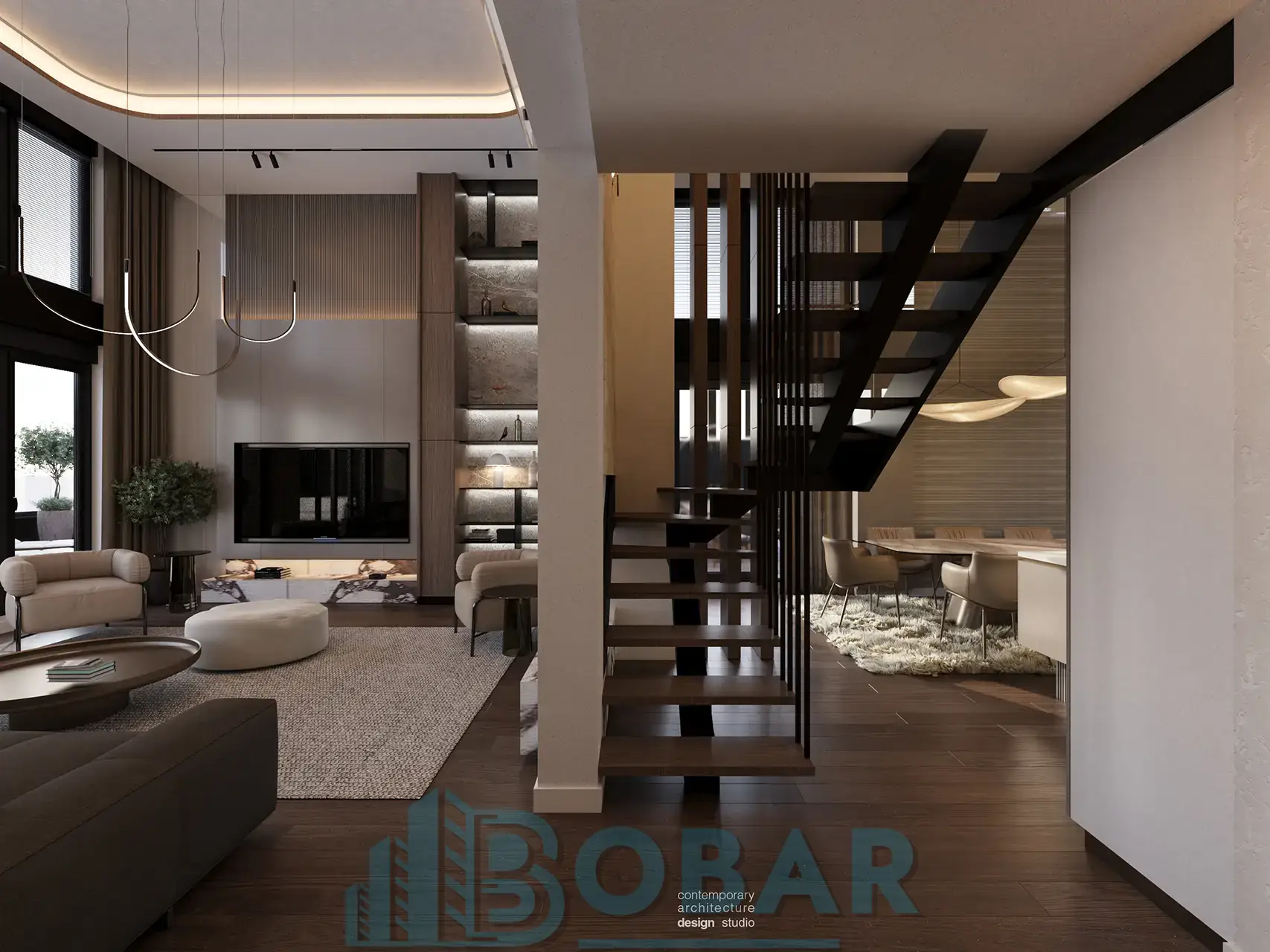 Stan na sedmom spratu u okviru stambeno-poslovnog Sajam Korner kompleksa odlikuje se visinom plafona od 6 metara i dodatnim nivoom u kojem su smeštene spavaće sobe i kupatila. Moderan dizajn, velika zelena terasa, prostrani raspored i korišćenje premium materijala i nameštaja omogućavaju optimalnu upotrebu prostora, maksimalnu funkcionalnost i luksuzan, udoban životni ambijent.