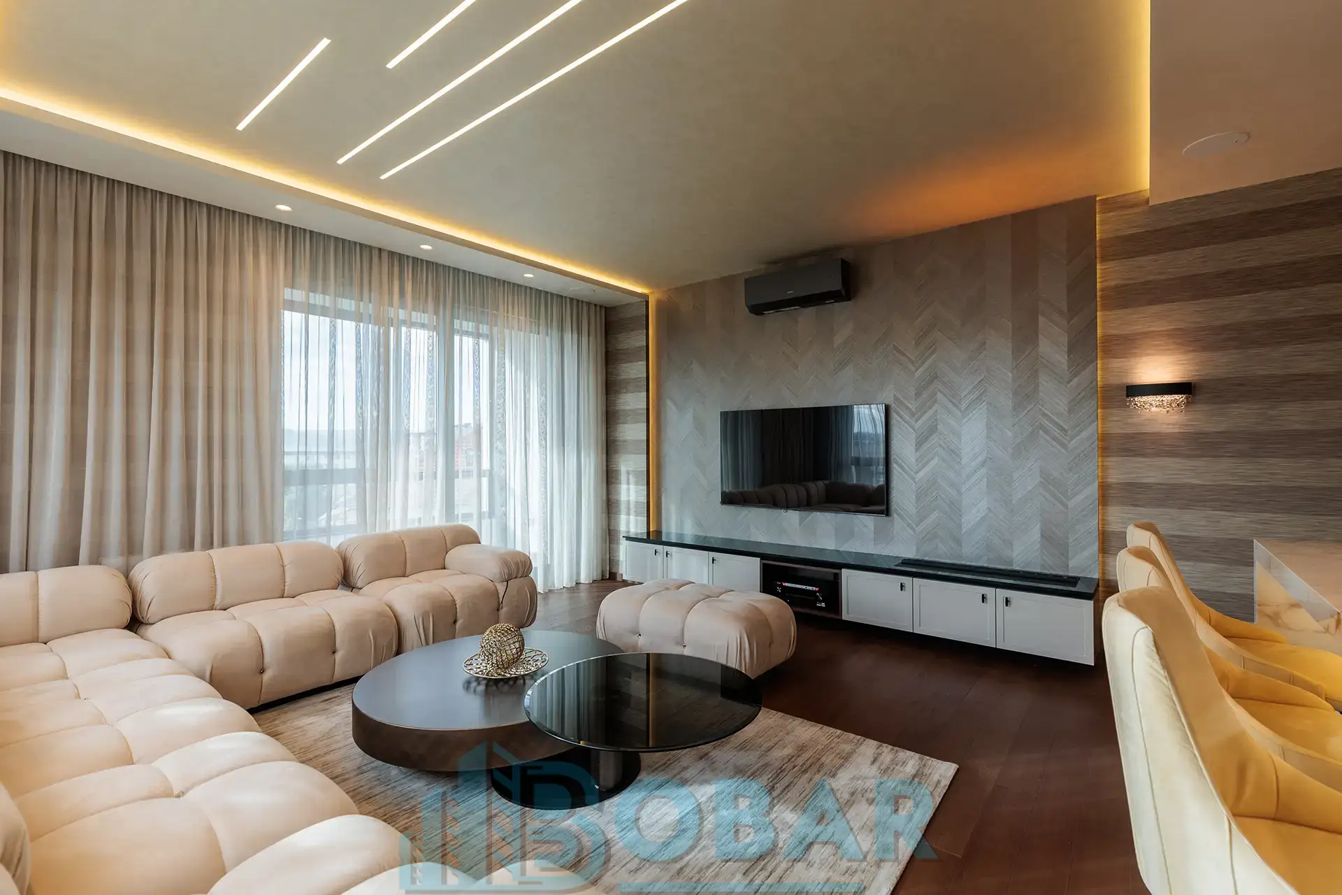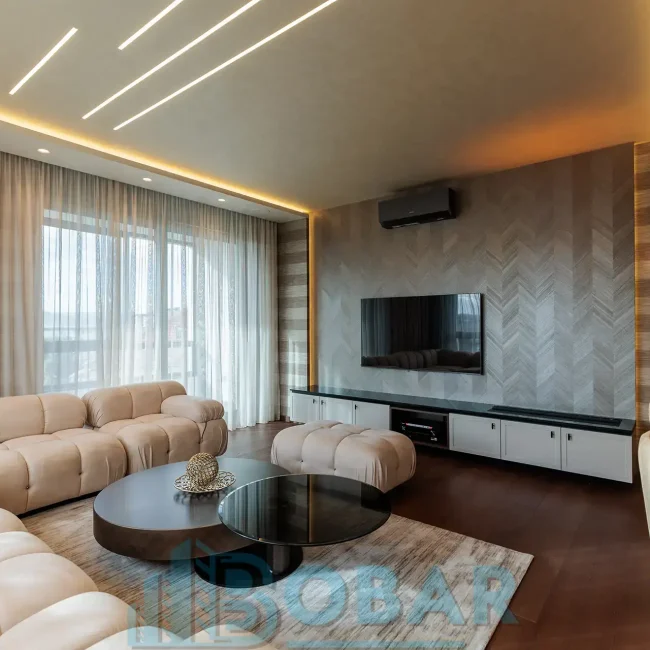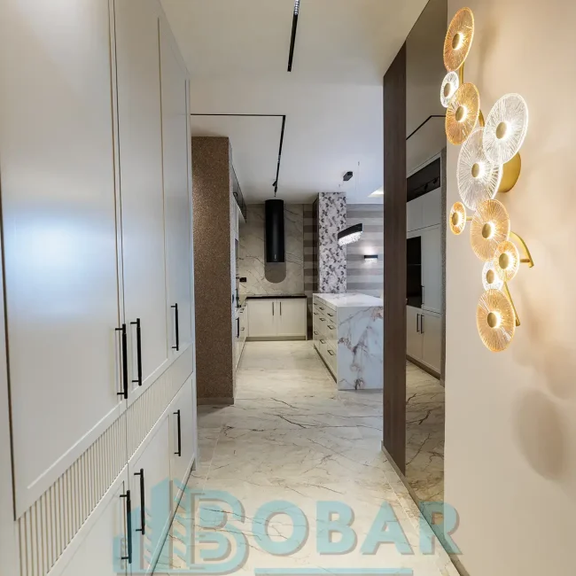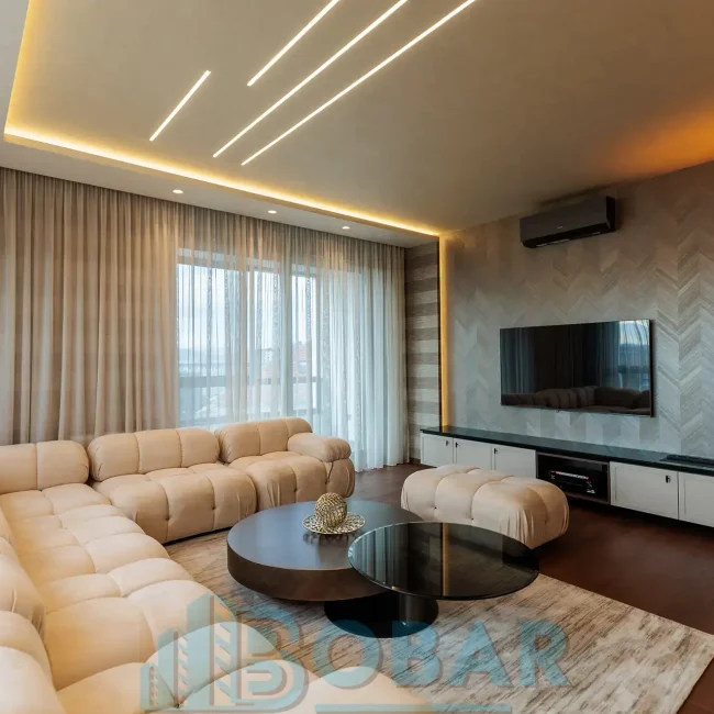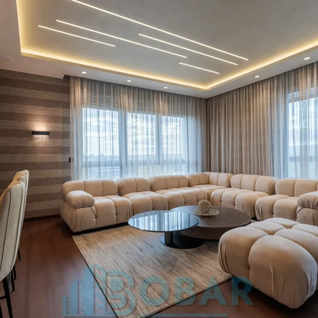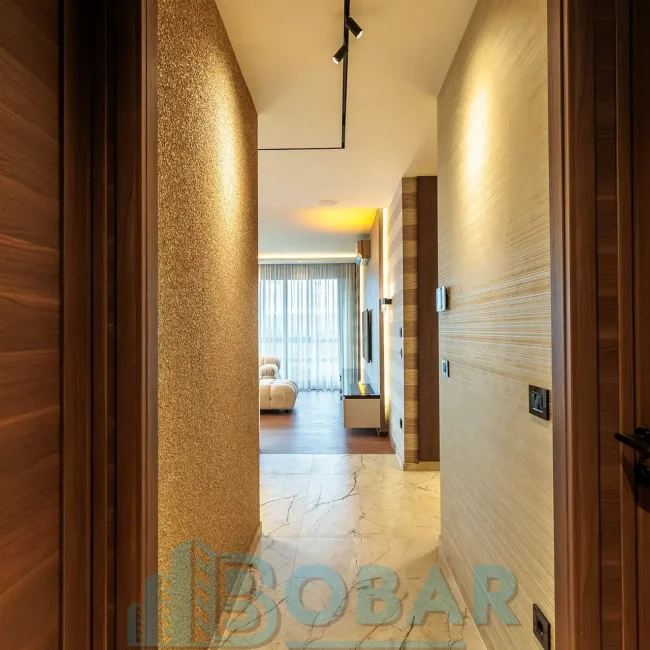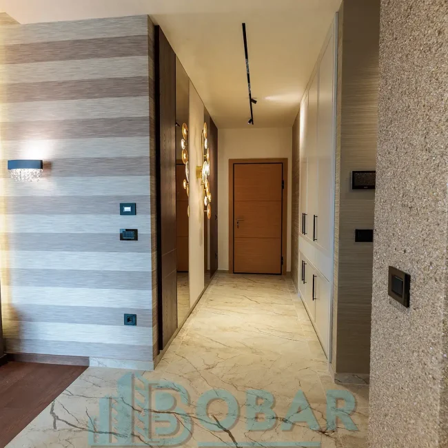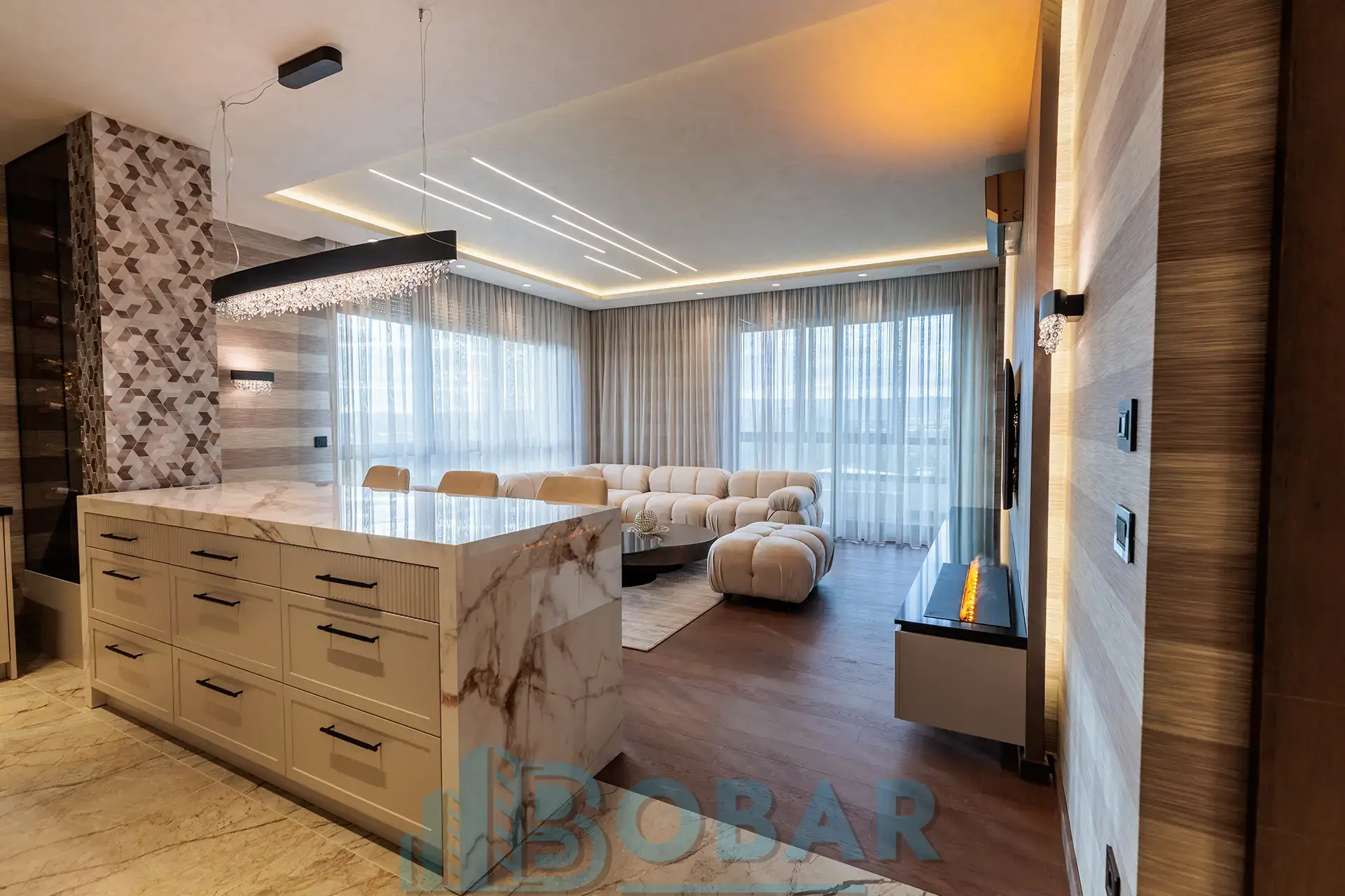 Ovaj luksuzno opremljen stan od 100 m² pruža savršenu kombinaciju prostranog dnevnog boravka, moderne kuhinje i elegantne spavaće sobe koja vodi u zaseban garderober. Stan poseduje dva funkcionalna kupatila, a pažljivo projektovan raspored, vrhunski materijali i premium nameštaj stvaraju sofisticiran i udoban ambijent, gde svaki detalj doprinosi luksuzu i maksimalnoj funkcionalnosti.