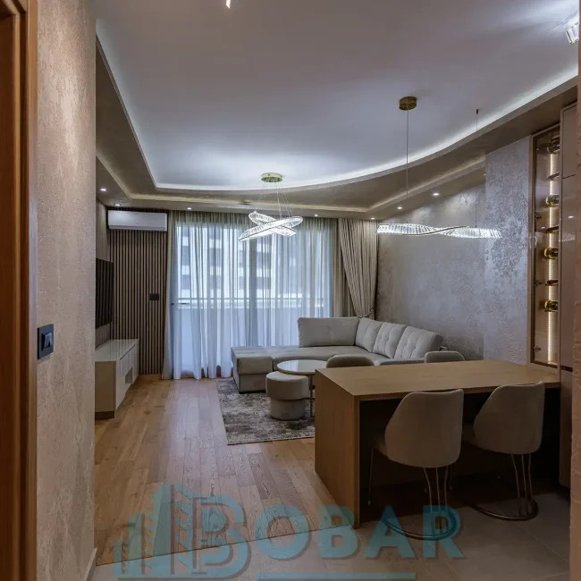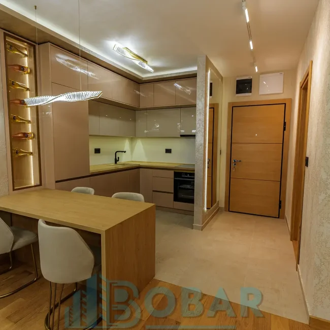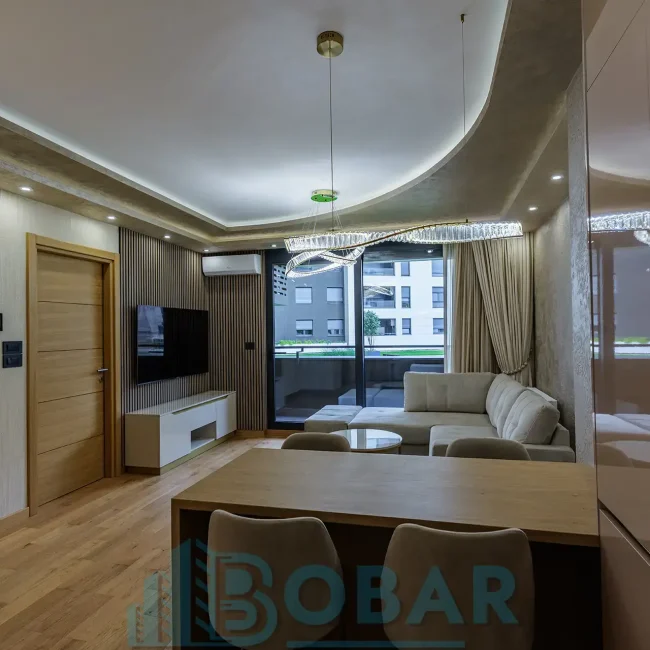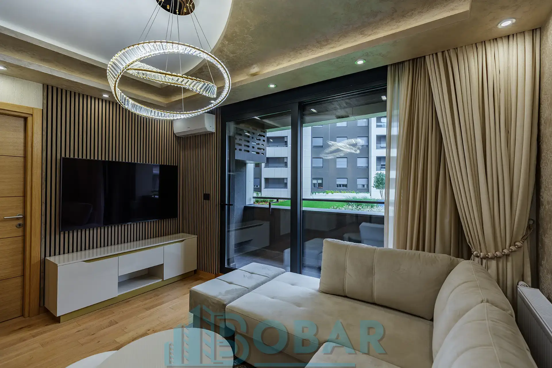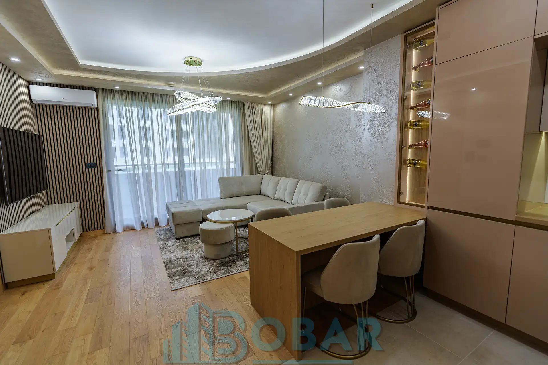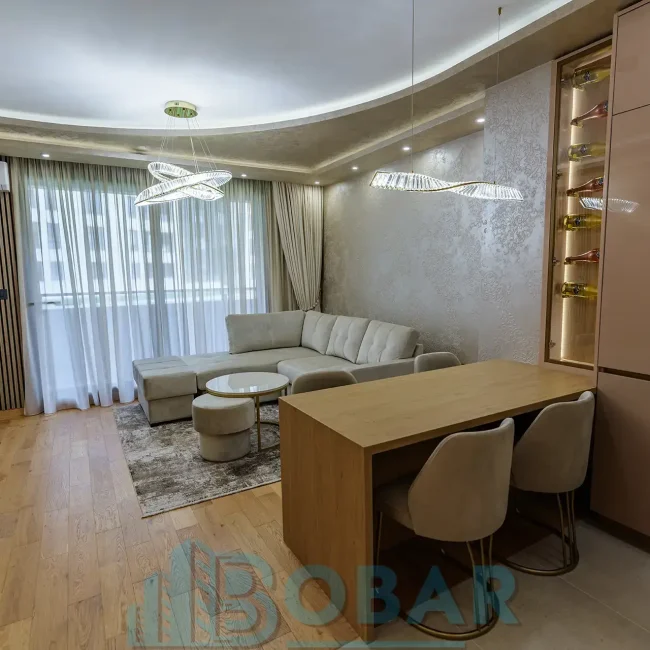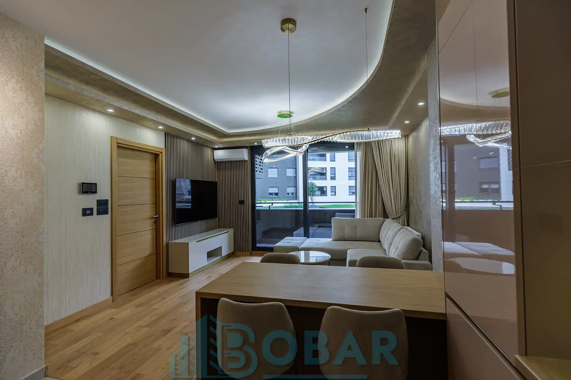 Stan od 45 m² dizajniran je tako da maksimalno iskoristi prostor i obuhvata dnevni boravak, kuhinju, spavaću sobu i kupatilo. Pažljivo projektovan raspored i vrhunski materijali sa elegantnim nameštajem omogućavaju stilizovan i komforan prostor i u kompaktnijoj kvadraturi.
