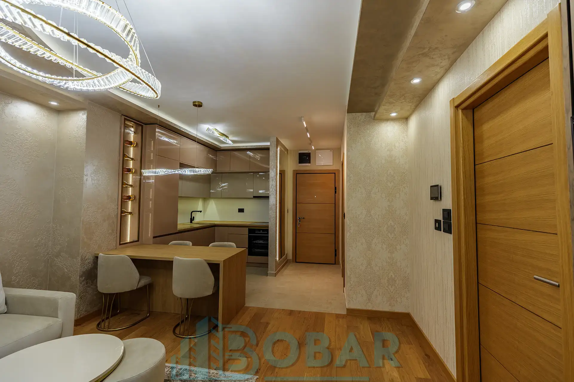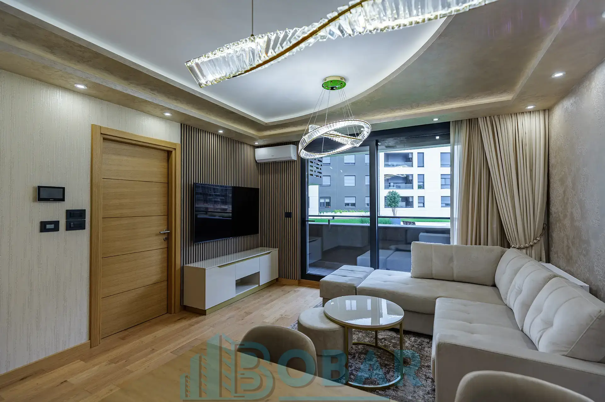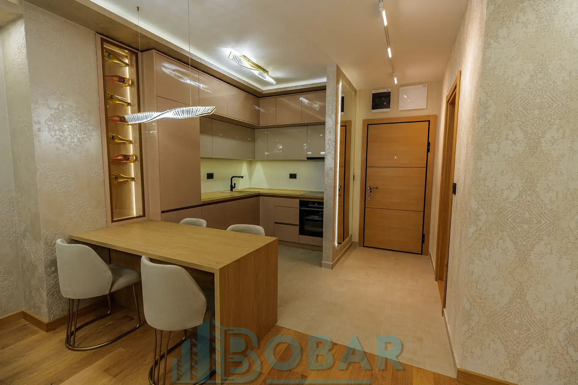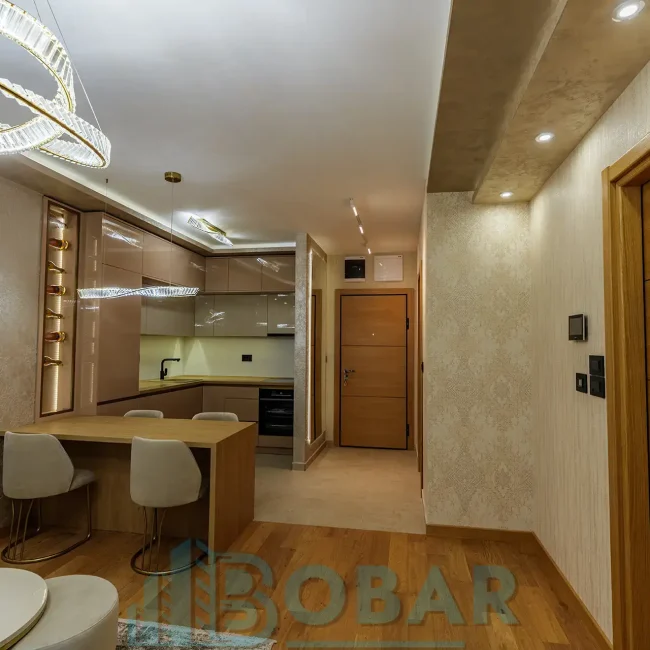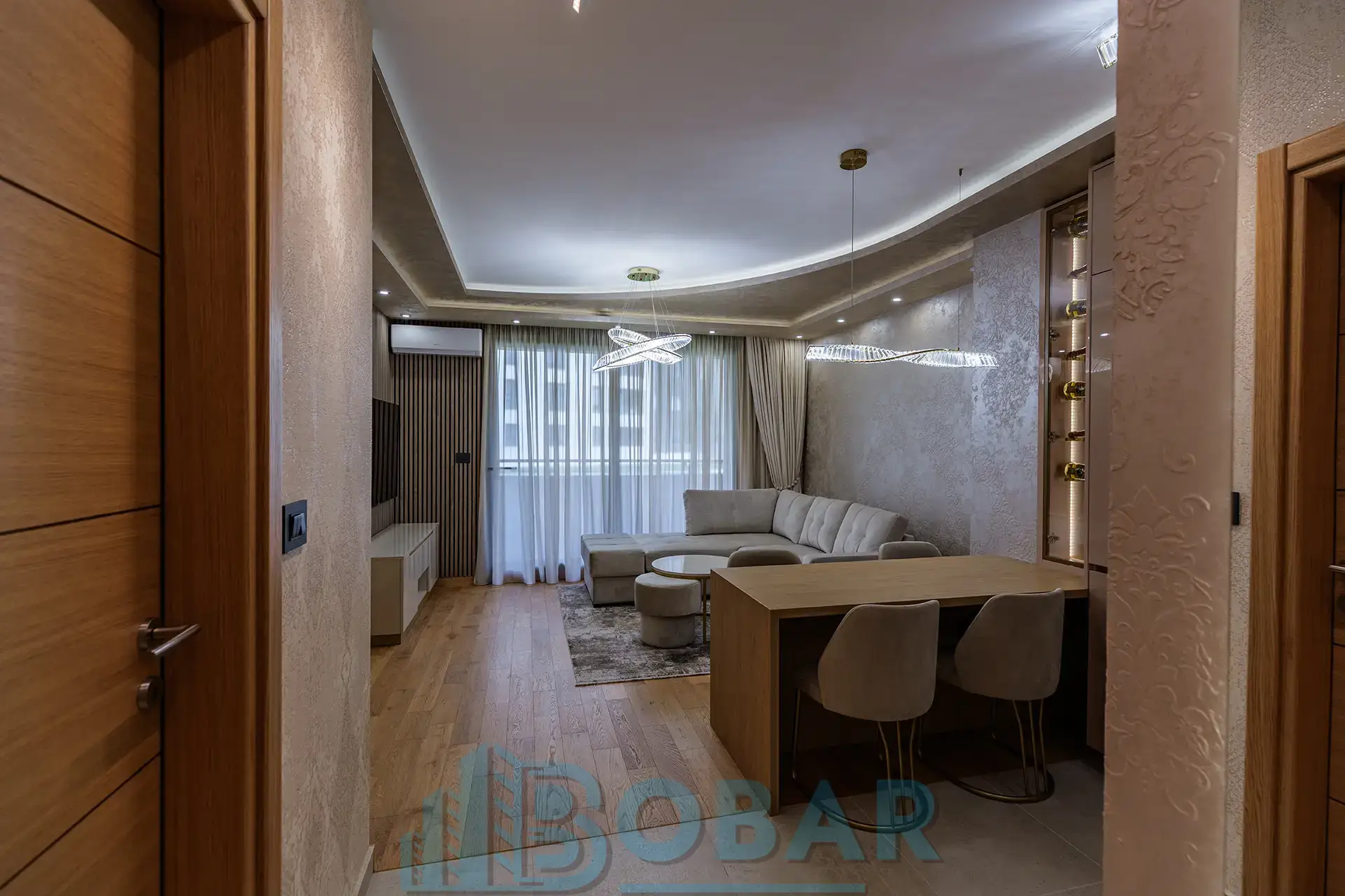Stan od 45 m² dizajniran je tako da maksimalno iskoristi prostor i obuhvata dnevni boravak, kuhinju, spavaću sobu i kupatilo. Pažljivo projektovan raspored i vrhunski materijali sa elegantnim nameštajem omogućavaju stilizovan i komforan prostor i u kompaktnijoj kvadraturi.