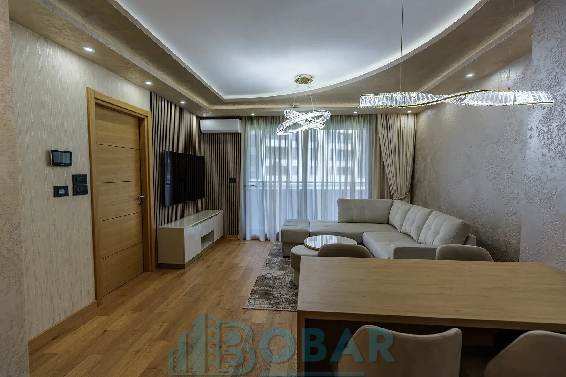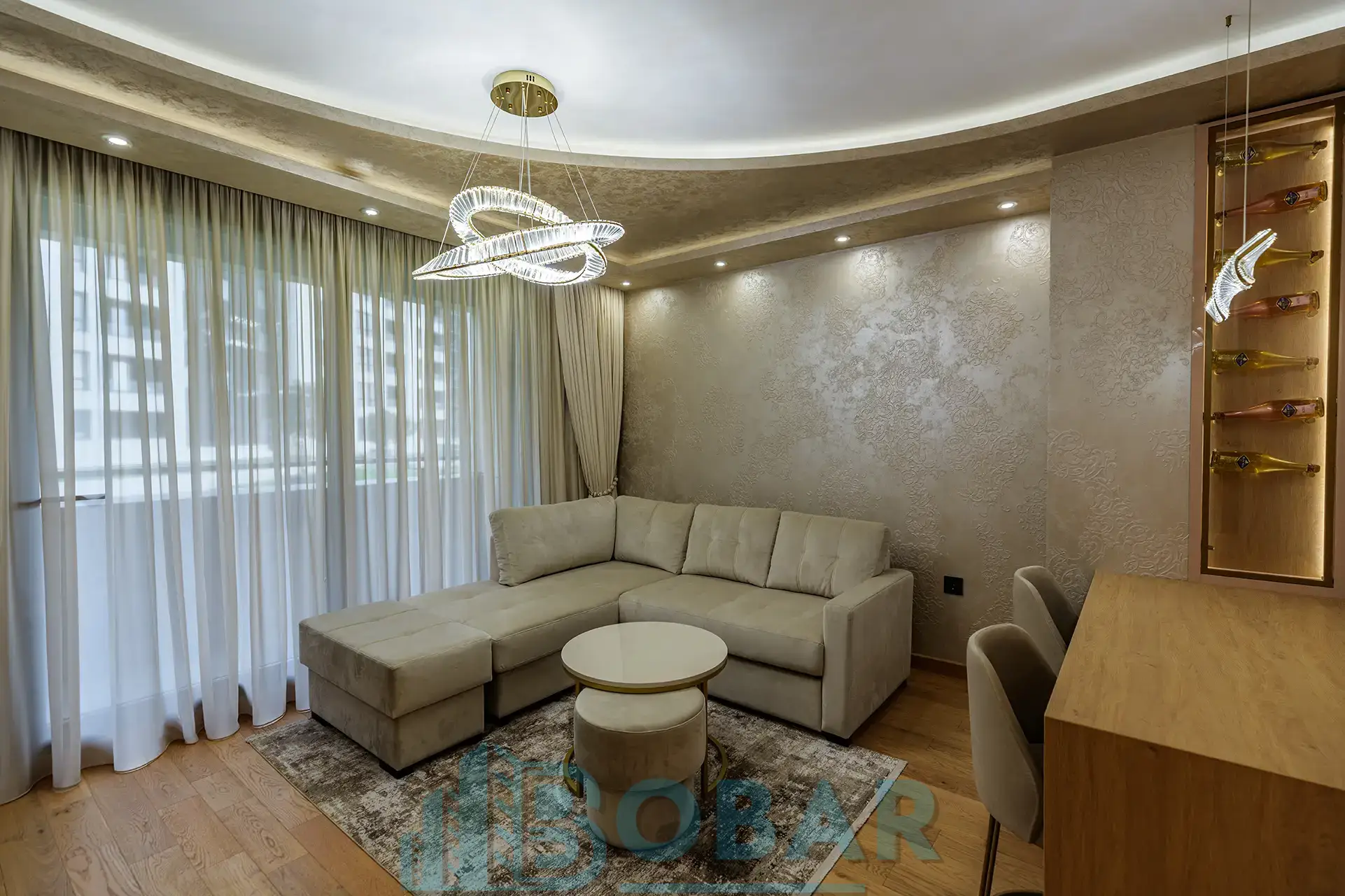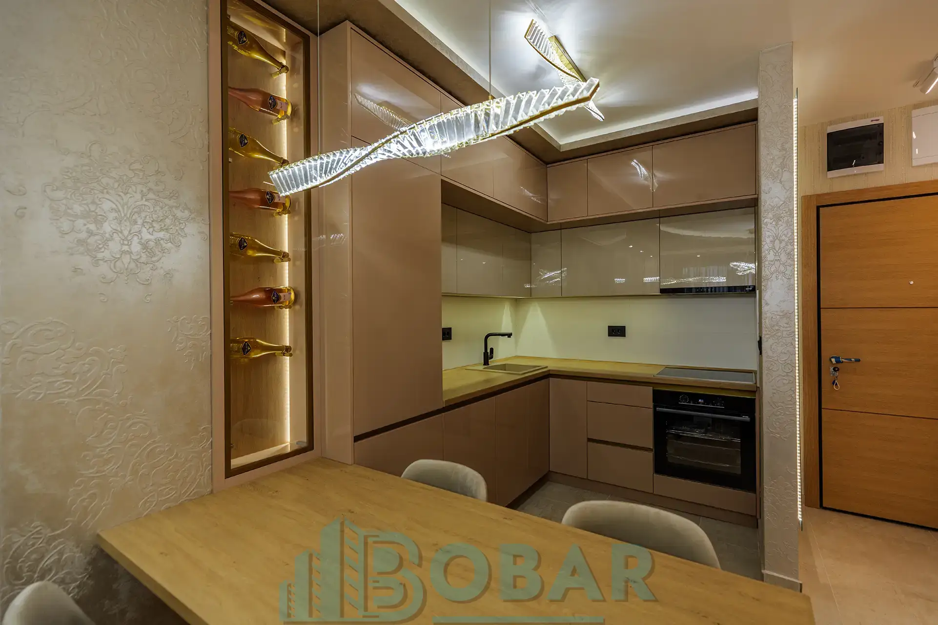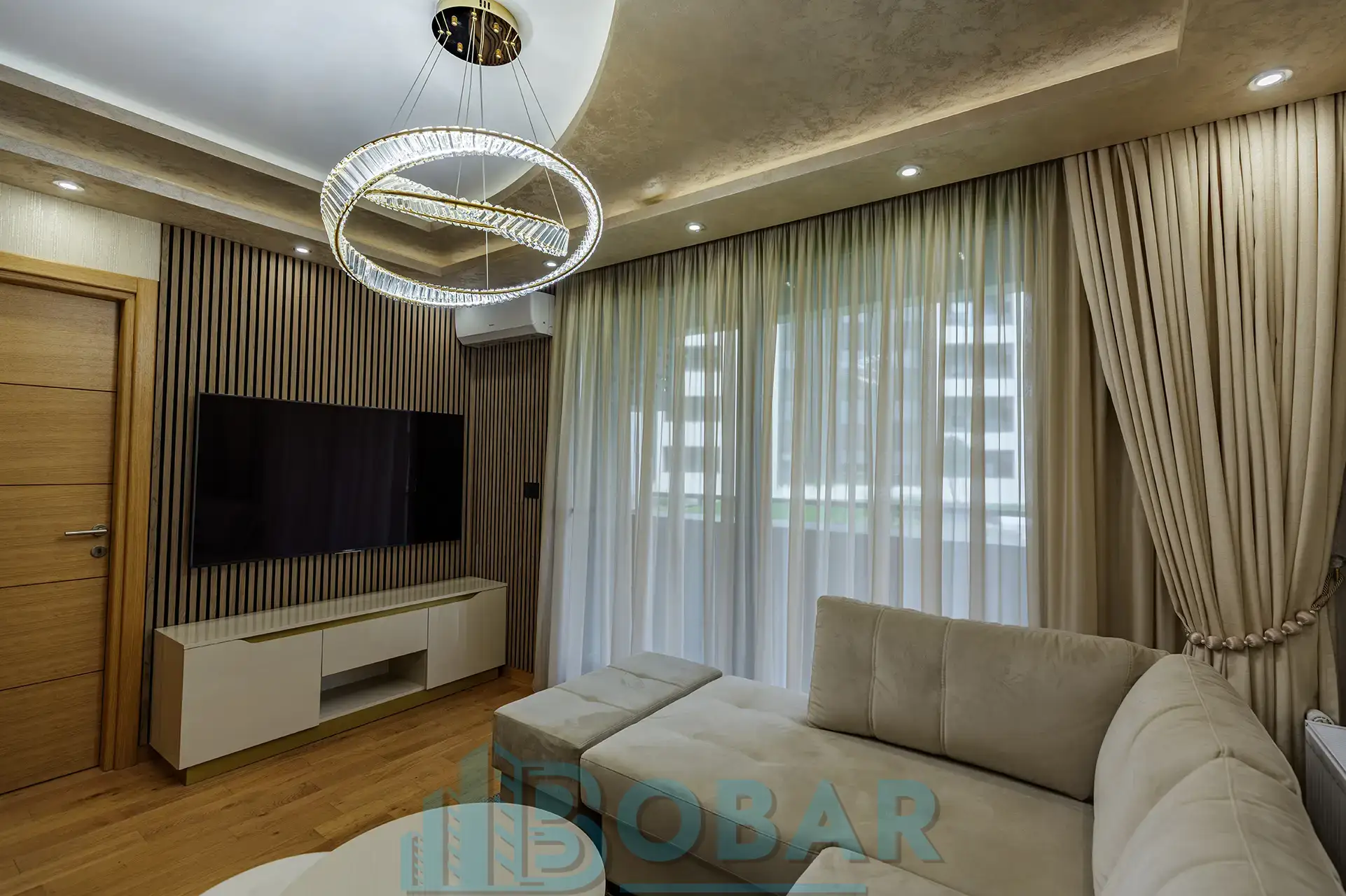 Stan od 45 m² dizajniran je tako da maksimalno iskoristi prostor i obuhvata dnevni boravak, kuhinju, spavaću sobu i kupatilo. Pažljivo projektovan raspored i vrhunski materijali sa elegantnim nameštajem omogućavaju stilizovan i komforan prostor i u kompaktnijoj kvadraturi.