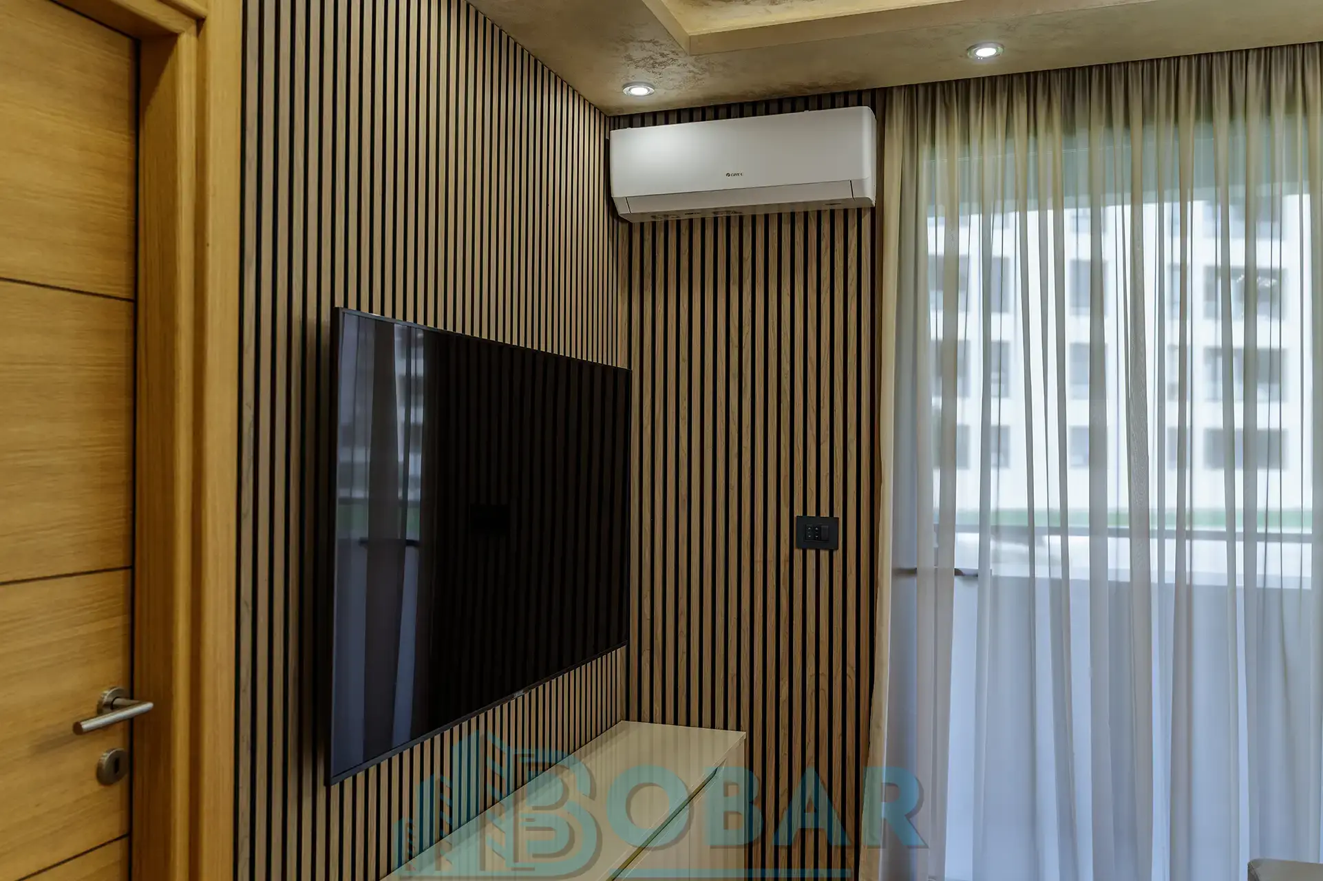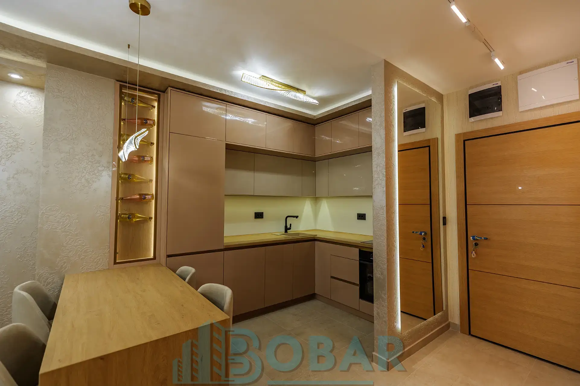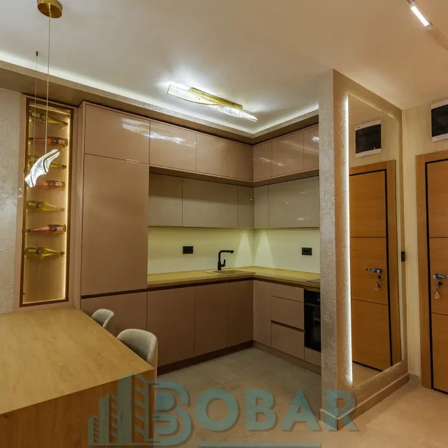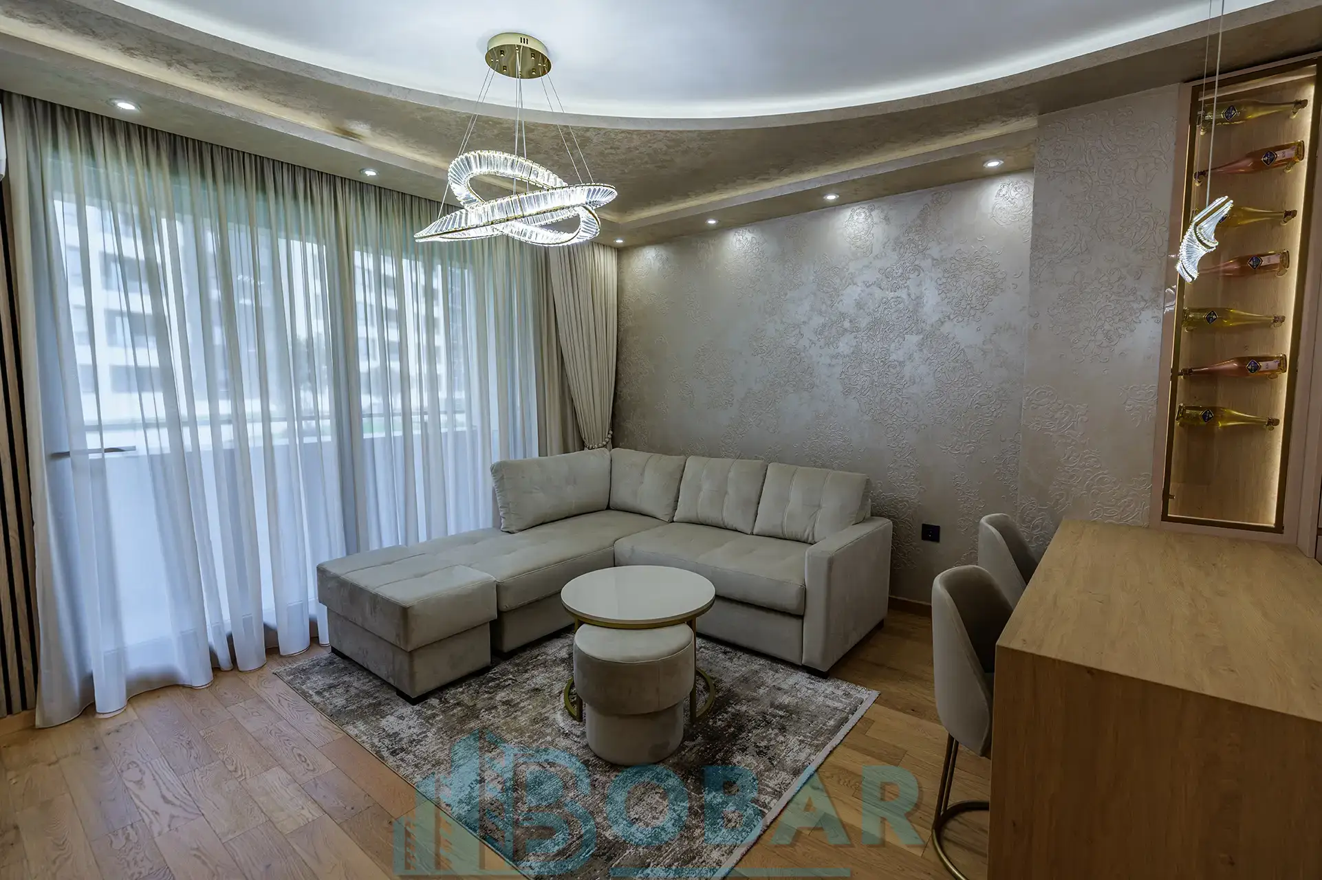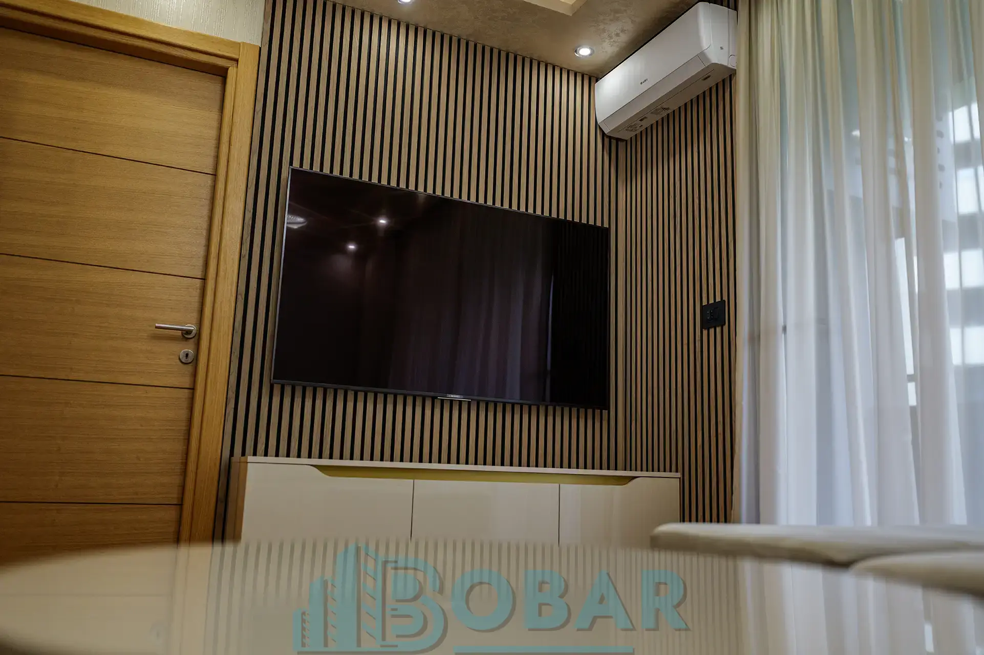 Stan od 45 m² dizajniran je tako da maksimalno iskoristi prostor i obuhvata dnevni boravak, kuhinju, spavaću sobu i kupatilo. Pažljivo projektovan raspored i vrhunski materijali sa elegantnim nameštajem omogućavaju stilizovan i komforan prostor i u kompaktnijoj kvadraturi.